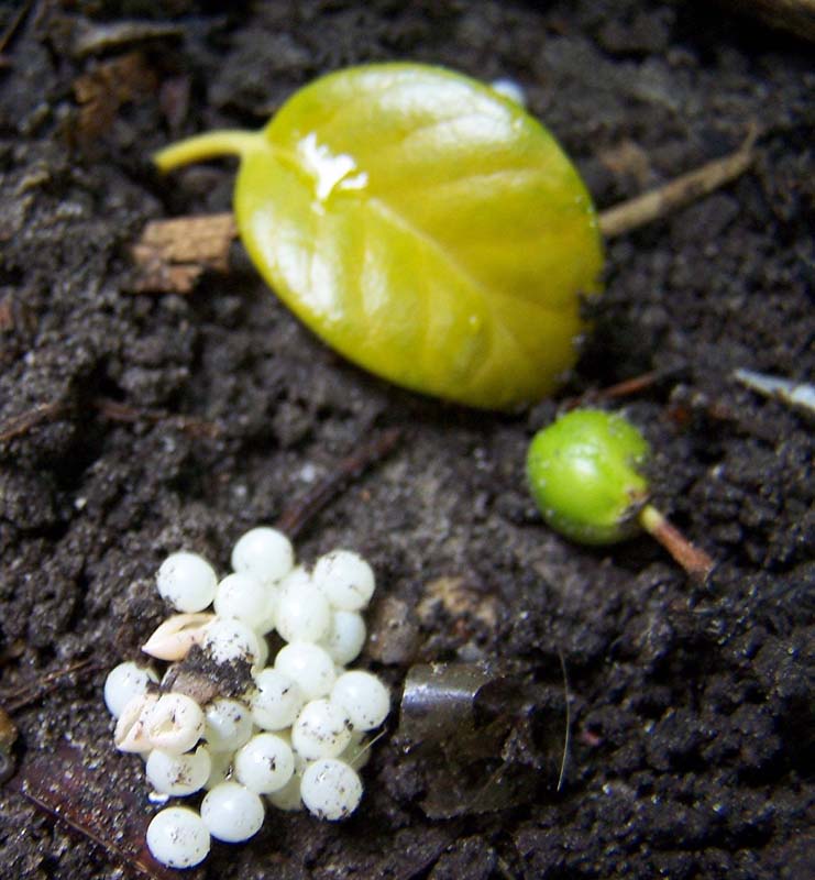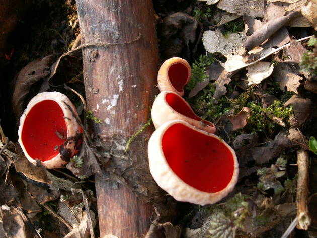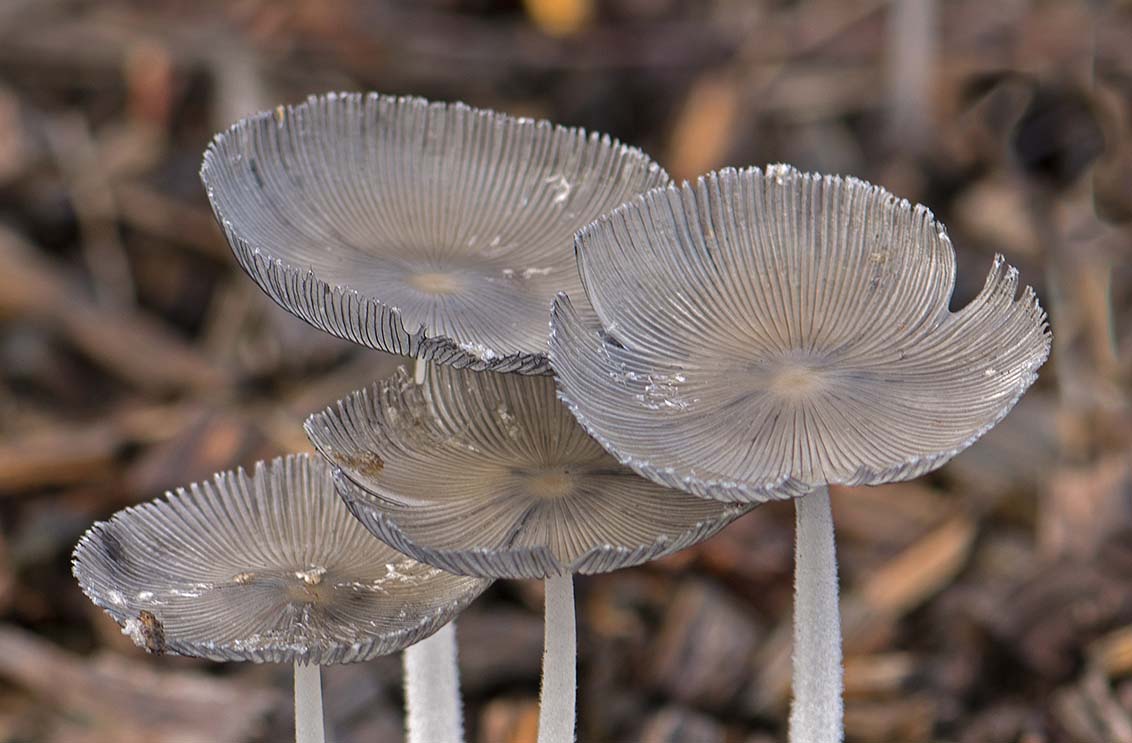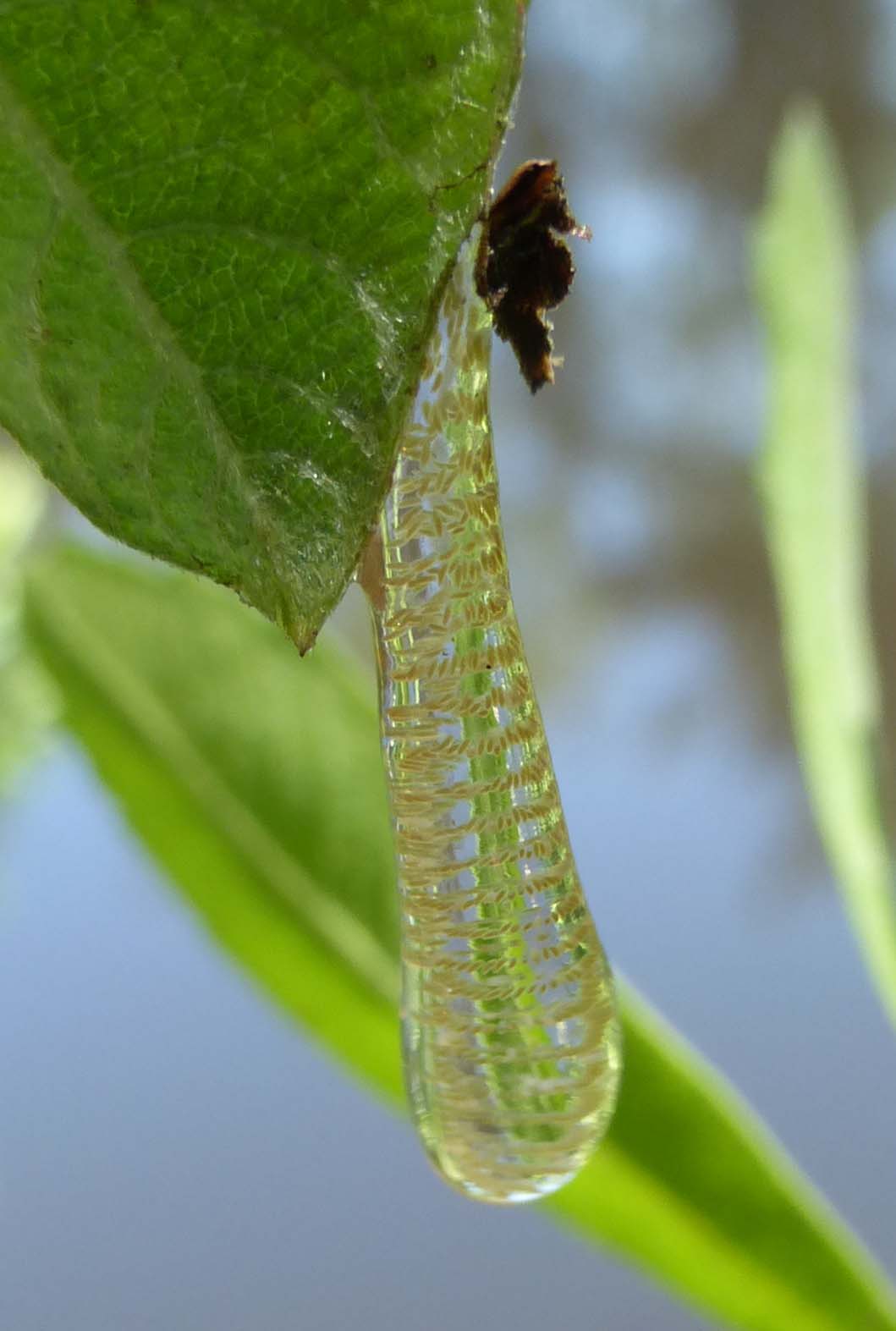 Op de tweede foto is te zien hoe ze ontstaan aan de onderkant van halfvergaan blad.