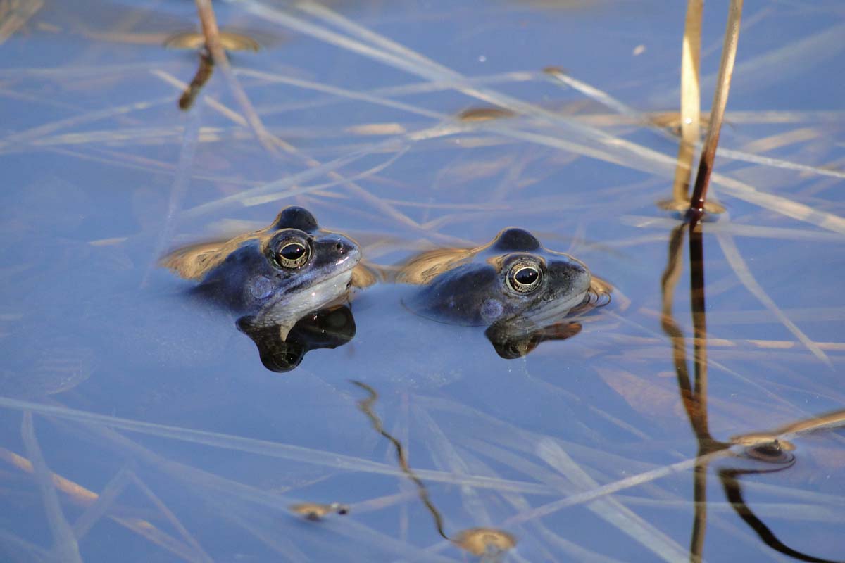 Op zondag 20 maart, wilde ik weer eens heikikkers zien in de paringskleur (blauw). We fietsten langs het Peelven in de Heidse Peel, bij de camping van Ysselsteyn: de Berkenhorst. Aan de rand zagen we wel bruine kikkers zwemmen en actief zijn maar we waren geen blauwe kikkers te bekennen.