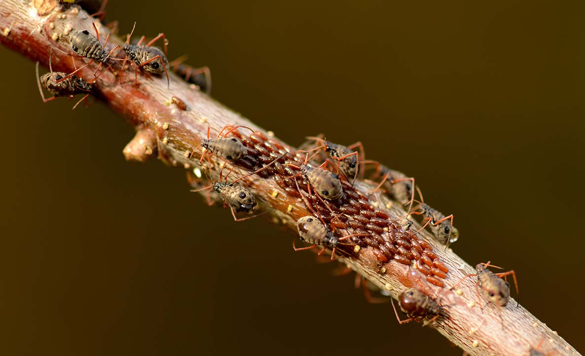 Op 1 november trof ik deze luizenkolonie aan op een eikentakje.