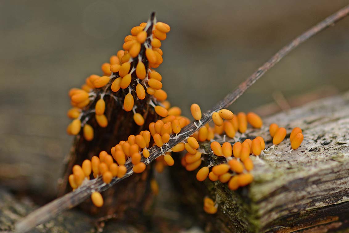 Het is een slijmzwam. Feitelijk zijn slijmzwammen geen schimmels, maar zij worden wel door mycologen bestudeerd.