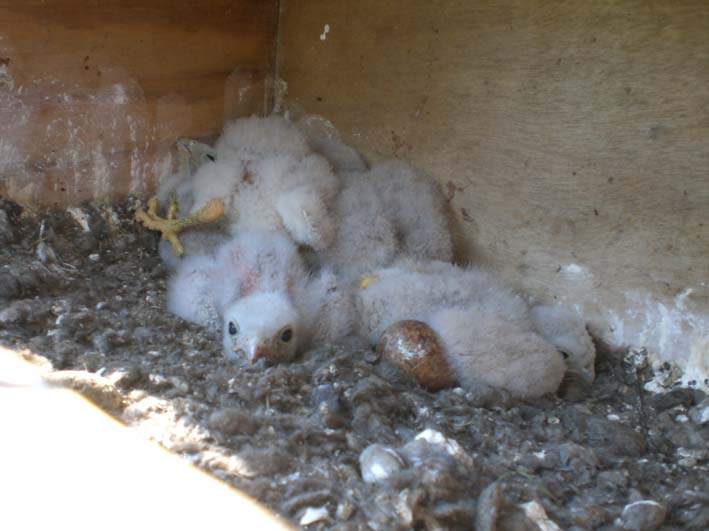 Er zijn minstens 3 jonge torenvalken uitgekomen, want we zien er vaak 5 in de lucht zweven.