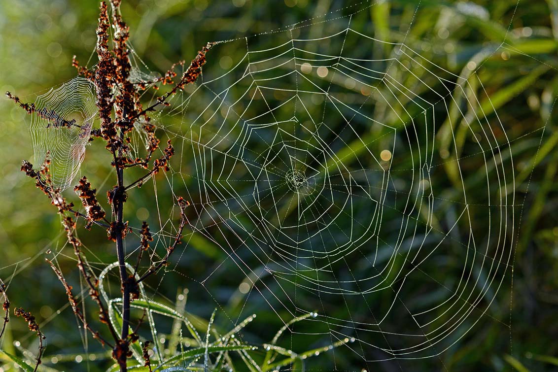 Spinnen zijn over het algemeen ware webkunstenaars, maar de spin die dit web maakte is duidelijk de weg kwijt.