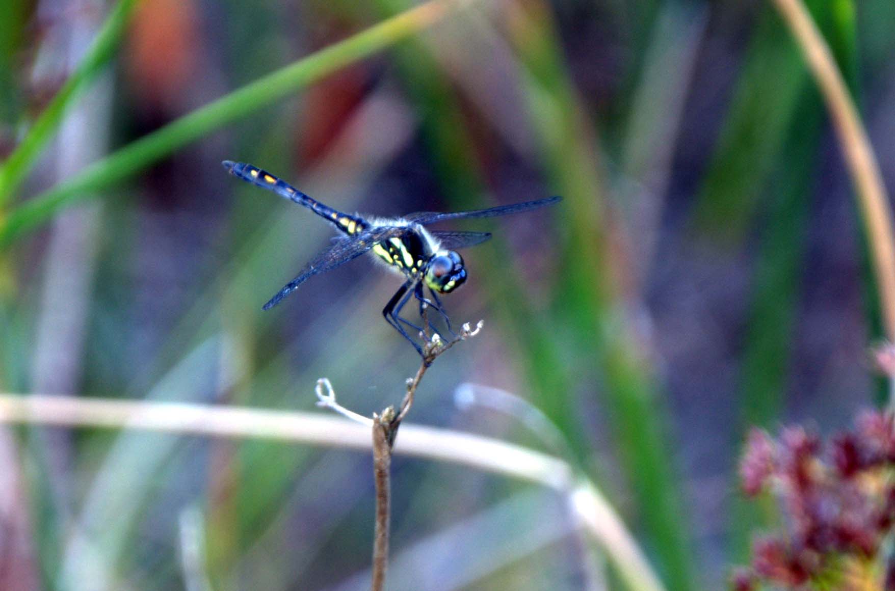 De verrekijker was niet eens nodig om al dat blauws te zien. Er staken wel 20 blauwe kikkerkopjes aan de overkant boven het water uit en ze maakten ook behoorlijk herrie. Ik kon mijn geluk niet op, mijn dag was weer goed.