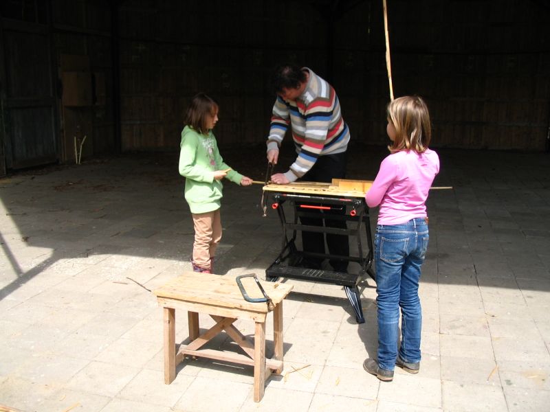 Gewapend met de tocht en een plastic zakje voor van alles te verzamelen ging de familie op pad. Het werd weer stil. De bedoeling was dat de mensen halverwege de tocht bij de kiosk een bijenhotel mochten maken. Dit in het kader dat het dit jaar: het jaar van de bij is. Is het wel zinvol om al ons materiaal naar de plek te slepen, indien er toch zo weinig publiek komt? Piet Weijers zou bij de kiosk gaan staan om het ene gezin op te vangen en deze verwijzen naar het begin van de tocht om daar dit hotel dan te maken.