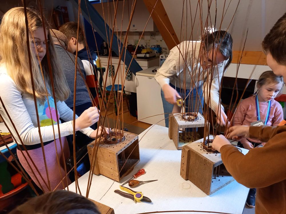 De huizen werden lang gelden gebouwd met wilgen, de manden werden van de wilg gevlochten voor opslag van aardappelen etc. De fuiken om vis te vangen en het wilgenhout voor de klompen. Hierna werden er ijverig vogelvoedermandjes gevlochten, alsmede slangenarmbandjes en Paasmandjes. Er werd een wilgenmuur van dikke wilgentakken gevlochten net zoals lang geleden de huizen werden gebouwd. Ook werden er praatstokken mooi versierd om thuis te gebruiken wie er mocht praten of stil moet zijn Het was een educatieve en creatieve middag met enthousiaste IVN'ers.