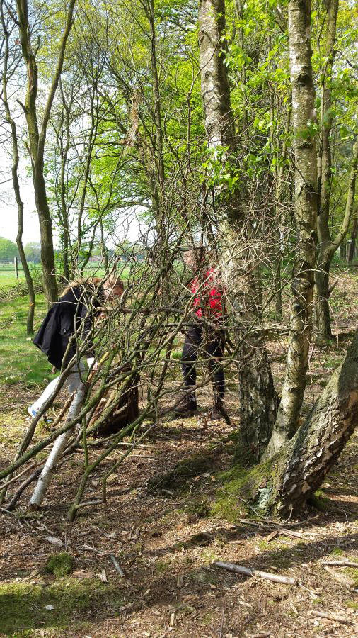 Later in de tijd maakten mensen hutten. Hoe deden ze dat?