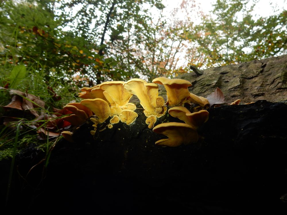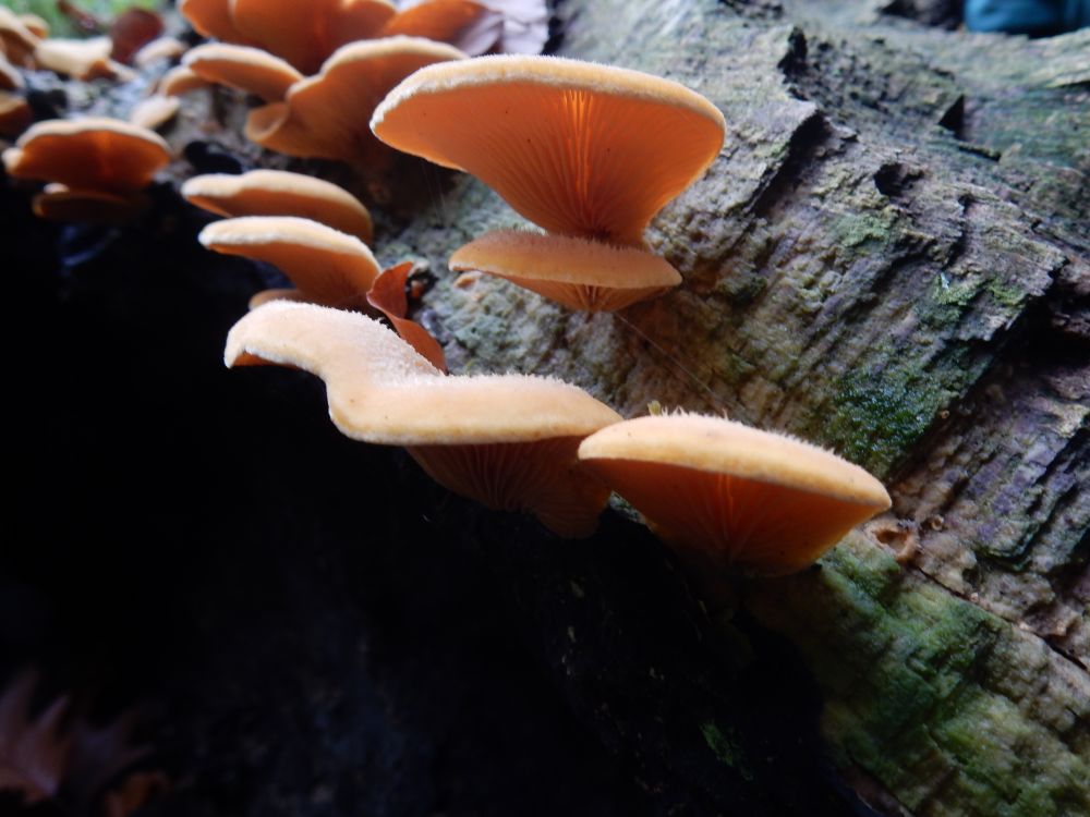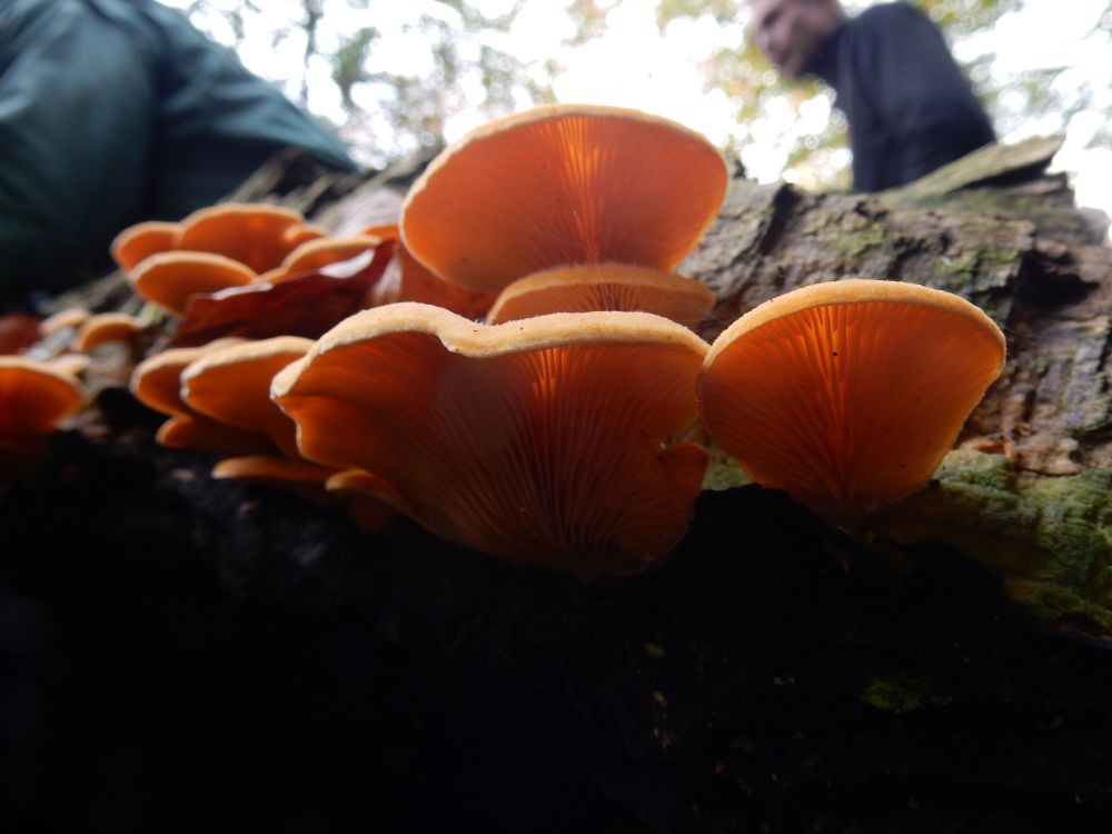 Oranje oesterzwam (Phyllotopsis nidulans) waargenomen tijdens de paddenstoelenexcursie op 27 oktober 2019.